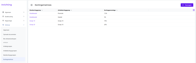 De kortingsmatrix vormt daarmee het centrale punt waar commerciële kortingsafspraken worden vastgelegd en beheerd.