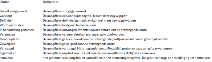 Let op: bovengenoemde status-varianten vind je alleen bij aangiften die zijn verwerkt door middel van "direct verzenden naar belastingdienst".