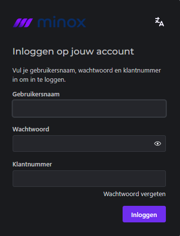 Tijdelijk verschijnt er als je uit Minox UITLOGT een nieuw inlogscherm: