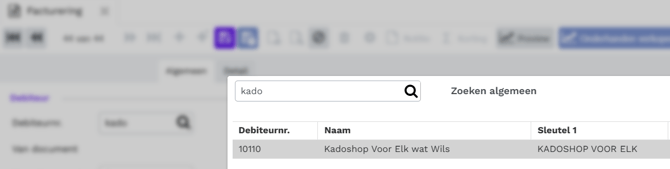 Automatisch worden het debiteurennummer en de debiteurennaam van de te verwerken factuur hier getoond.