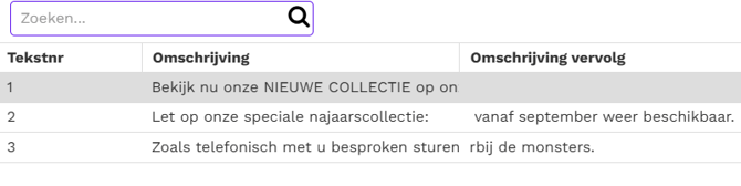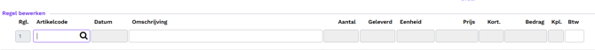 Er wordt geen artikelcode ingegeven. Er wordt handmatig een omschrijving ingetoetst of er wordt een factuurtekst geselecteerd. Alle overige kolommen zijn niet van toepassing en zijn dus niet te benaderen. |