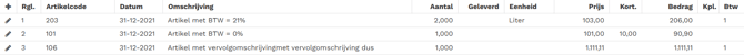 Ter informatie wordt per regel de BTW-code getoond.
